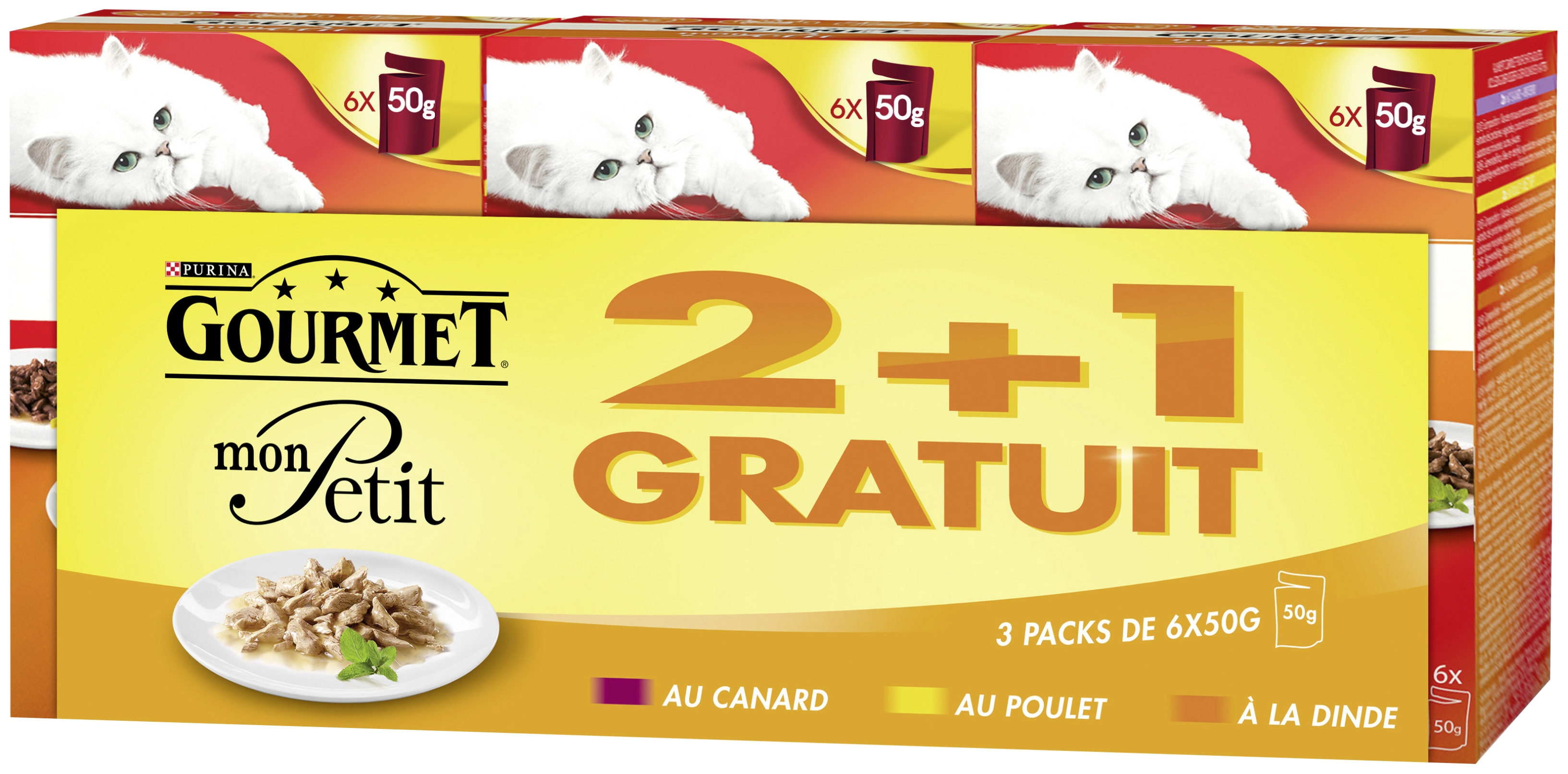 Savourez le délicieux GOURMET - MON PETIT AUX VIANDES GOURMET - ou aux poissons, un lot de 6 sachets de 50g, soit 300g de pur plaisir pour votre animal de compagnie. À seulement 7,63 € le kilo, profitez de cette offre exclusive ! Par 3 lots, bénéficiez d'un prix encore plus avantageux de 5,09 € le kilo. Offrez à votre animal une alimentation de qualité et succombez à la gourmandise de GOURMET !