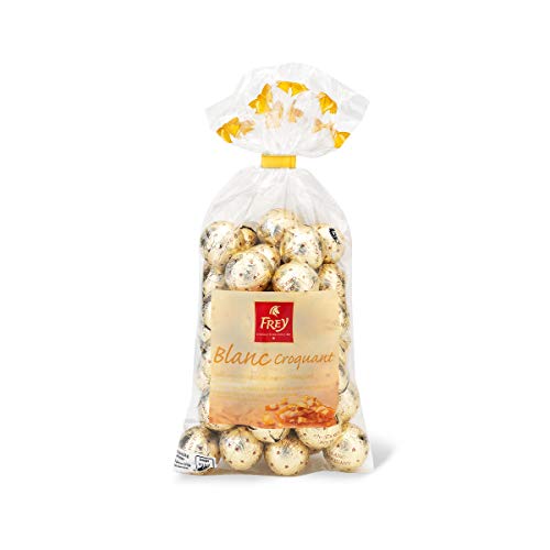 7616500649149 LES DÉLICES : enrobé d'un chocolat blanc, le fourrage au croquant de noisettes déploie un goût unique : un plaisir au chocolat idéal à partager, à déguster soi-même ou à offrir,PLAISIR SUCRÉ : ces bonbons au chocolat blanc et au fourrage crémeux et noiseté se prêtent à merveille au remplissage du calendrier de l'Avent ou comme décoration de Noël. Le cadeau pour tous tes proches, qui illumine tout visage d'un sourire !,DÉTAILS CHOCOLATÉS : boules de chocolat blanc avec fourrage crémeux et croquant de noisettes - 1x 480g - Fabriqué en Suisse à partir de cacao certifié UTZ,NUMÉRO 1 DE SUISSE : du grain au chocolat, tout est transformé et affiné par nos chocolatiers expérimentés en Suisse. Traditionnel et de qualité : que le chocolat Frey soit le plus consommé en Suisse n'a rien de surprenant.,SWISS CHOCOLATE : depuis 1887, la maison Chocolat Frey te garantit des instants de plaisir gustatif grâce à un artisanat traditionnel, des ingrédients de choix et beaucoup d'amour !,Poids du colis: 480.0 grammes