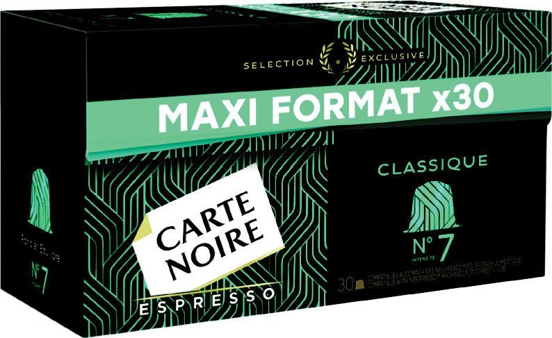 CAPSULES DE CAFÉ “CARTE NOIRE” Classique N°7, Intense N°9 ou Puissant N°11