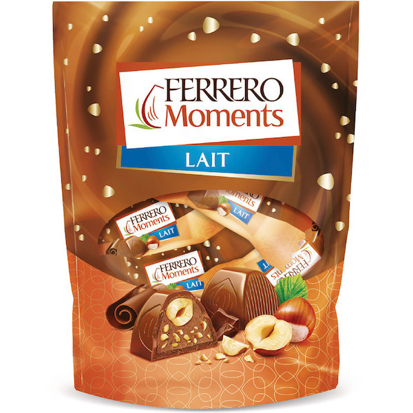 "Les chocolats Ferrero Moments Lait sont tout simplement délicieux ! Leur texture crémeuse et leur goût onctueux en font un vrai moment de plaisir à déguster. Je recommande vivement ce produit pour tous les amateurs de chocolat gourmand et de qualité.".