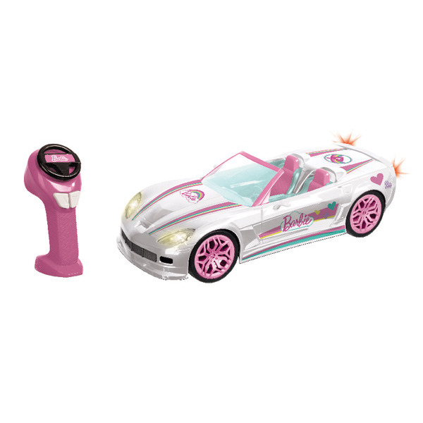 Radio commandé, 43cm, 2,4GHz, 8 km/h, phares lumineux. Peut accueillir 2 poupées Barbie (non fournies). 5 piles LR06 et 2 piles LR03 non fournies.