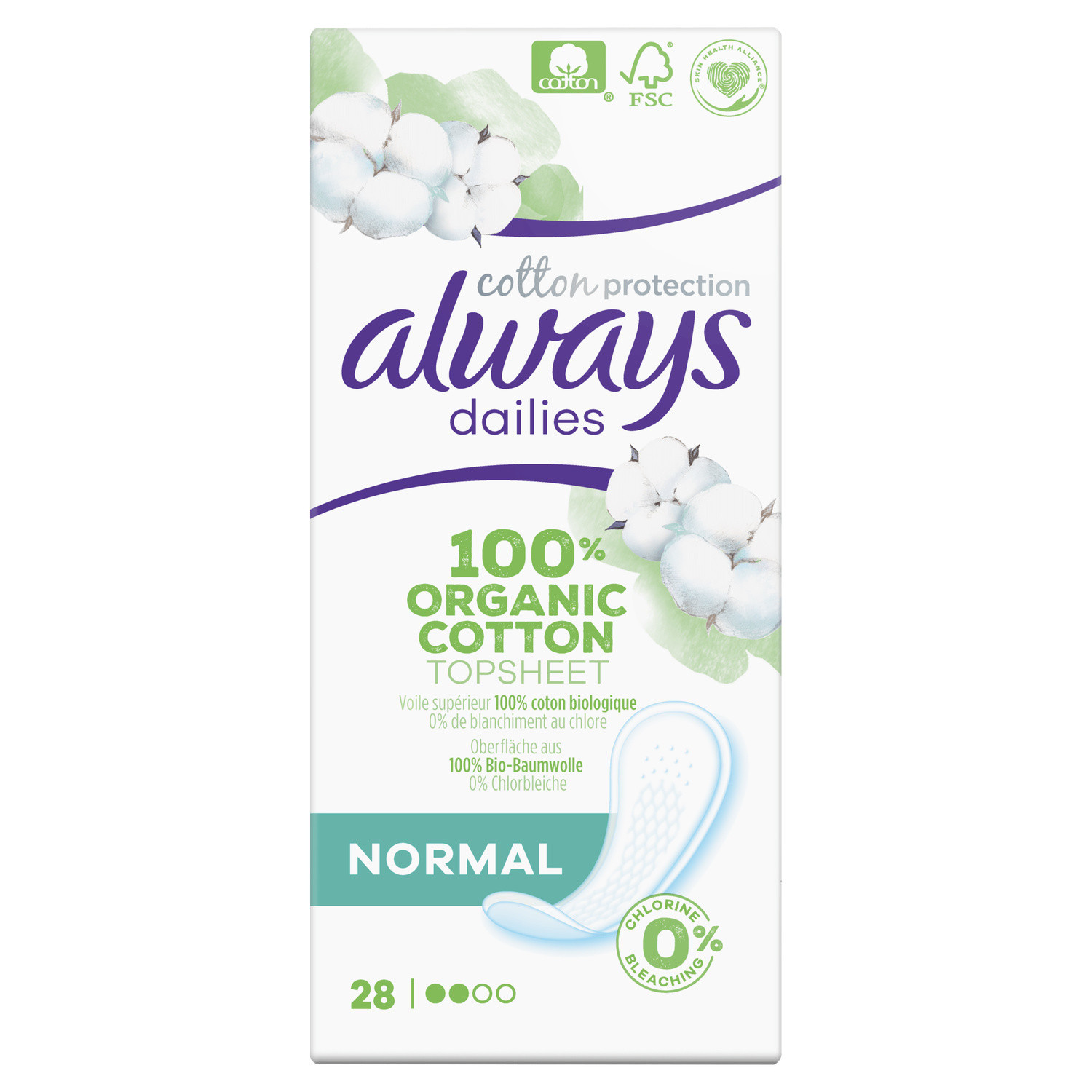 Protégez-vous en continu avec les protège-slips dailies ALWAYS. Confortables, discrets et absorbants, ils sont parfaits pour votre quotidien. Restez en confiance et protégée à chaque instant avec ALWAYS.