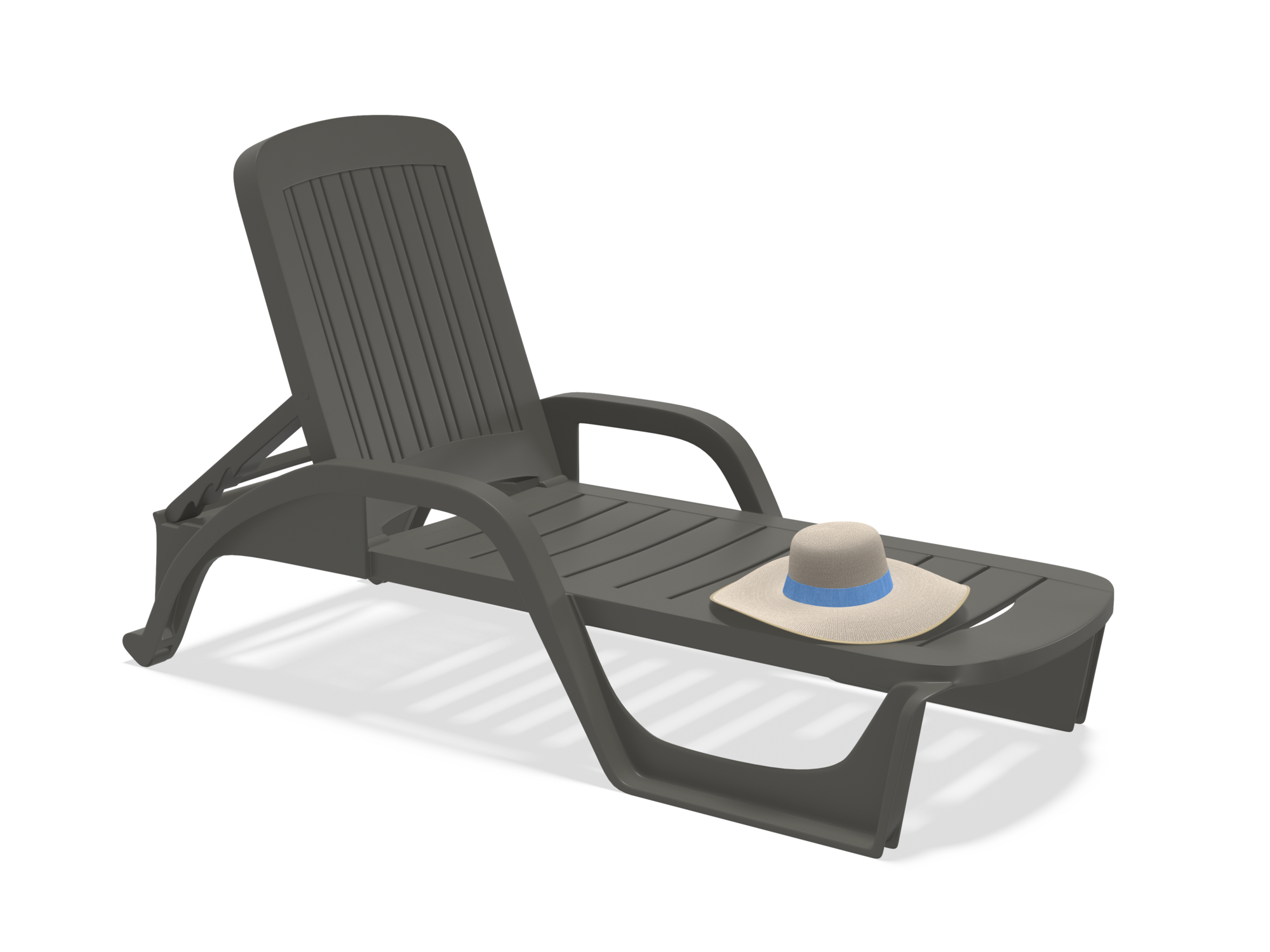 En résine de synthèse. Dim : L. 190 x l. 71 x H. 46 cm. Dossier 5 positions.