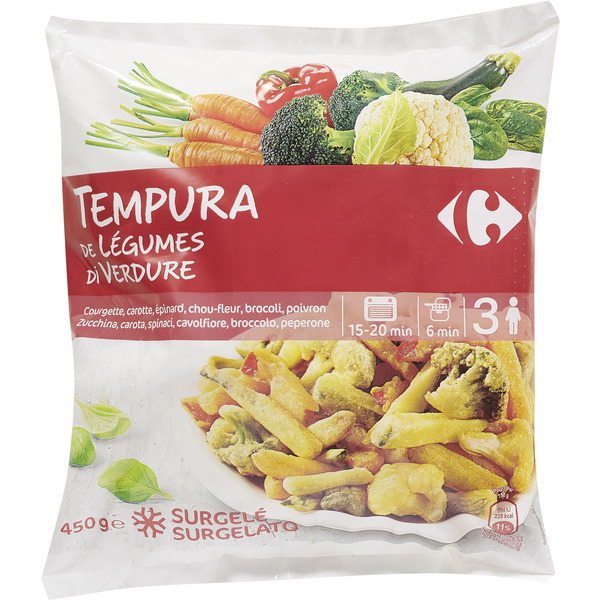 Savourez le délicieux tempura de légumes surgelé, proposé par Carrefour au rayon surgelés. Ce produit de 450g vous garantit une explosion de saveurs grâce à sa préparation soigneusement élaborée. Carrefour, votre allié incontournable pour des repas gourmands et pratiques..