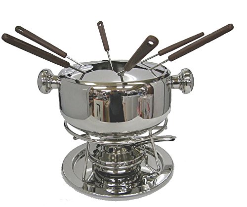 Fondue bourguignonne Professionnel inox 18/10 11-Acier Inoxydable Service à fondue 11 pièces en acier inoxydable. Comprend une base en acier avec support en métal chromé-Réglage de La casserole-Couvercle en inox-6 fourchettes et un fornelletto ouvrant de dernière génération à propulsion alcohol.