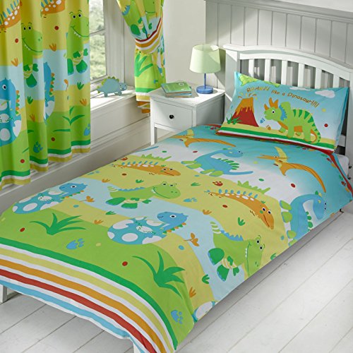 Une parure de lit fun et coloré thème dinosaure Housse de couette taille?: 135 cm x 200 cm. Taie d'oreiller?: 50 cm x 75 cm Comprend 1 x Housse de couette et taie d'oreiller 21 x Lavable en machine Matériau facile d'entretien - 48% coton, 52% polyester.