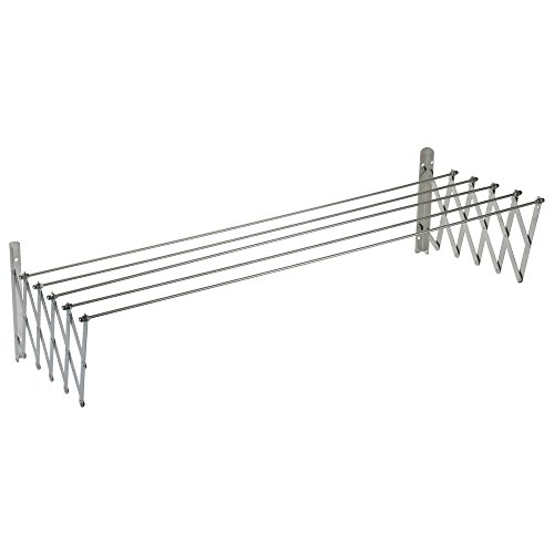 Matière: 100% acier inoxydable 18/10 Mécanisme-accordéon idéal pour les petits espaces, ce séchoir à linge s'étire et se replie très facilement Matériel de fixation fourni (Visserie en acier inoxydable) Capacité d'étendage de 5 mètres Largeur fermé: 13,5 cm. Largeur ouvert: 78 cm. Disponible en 6 tailles Garantie : 5 an(s) Matière : Inox Couleur : Inox Description du produit: Séchoir à linge extensible 100% inoxydable avec 5 barres de 100 cm..