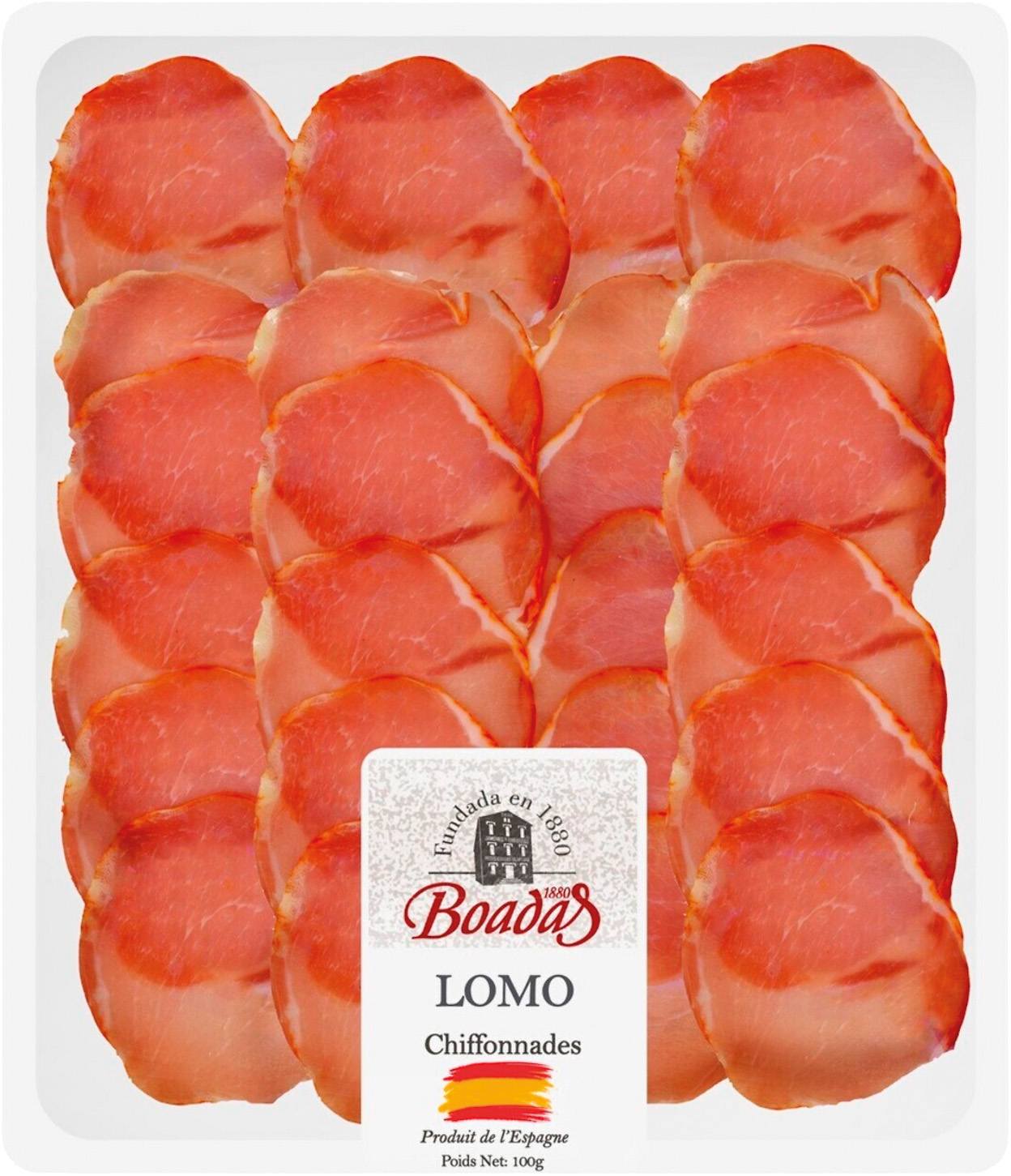 CHIFFONNADES DE JAMBON SERRANO RESERVA 12 MOIS OU LOMO EMBUCHADO La barquette de 100 g