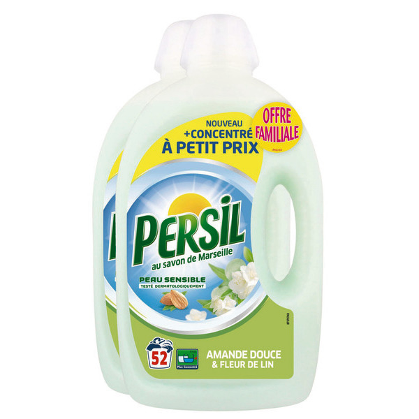 Choisissez Persil, la lessive liquide par excellence ! Offrant des parfums envoûtants d'amande douce & fleur de lin ou bouquet de Provence, cette offre exclusive de 2 x 52 lavages et 2 x 2,6 L est réservée aux détenteurs de la Carte fidélité. Essayez dès maintenant Persil pour une expérience de lavage incomparable..
