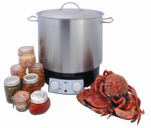 Puissance : 1800 W Voltage : 230 V Dimensions intérieures de la cuve : 36,5 x 30 cm Dimensions extérieures du stérilisateur: Hauteur avec couvercle 48 cm, largeur avec poignées 48 cm Matière : Inox 18/10 Capacité : 30 L Minuterie 120 mn Thermostat à bulbe réglable de haute fiabilité Protection contre la surchauffe Témoin lumineux de fonctionnement Enroulement du cordon Livré avec une grille support de bocaux, de 31cm Descriptif Produit : La stérilisation moderne par excellence. Gain de temps, qualité de résultats pour stériliser jusqu'à 21 bocaux. Autocuiseur grand volume, pour réaliser des plats tels que coucous, poule au pot, pot au feu, etc..