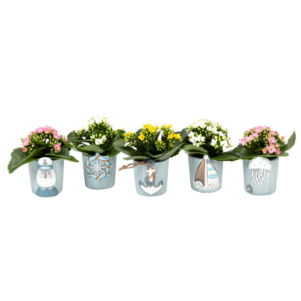 Kalanchoe avec céramique "mer".Existe aussi en succulente : 3,49 €.