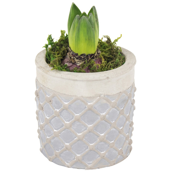 3 jacinthes, pot de Ø 12 cm. Ton sur ton.