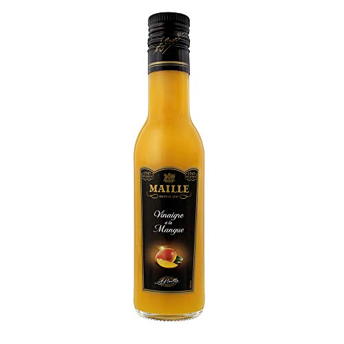 8722700260806 Une bouteille de Vinaigre à la mangue de 250ml,Un vinaigre avec 6% d'acidité,Ce vinaigre à la mangue offre une saveur douce et exotique, idéale en assaisonnement de salades de volaille, de crustacés, de poissons crus et de recettes au curry.,Depuis 1747, la Maison Maille sélectionne minutieusement ses ingrédients et veille au parfait équilibre de ses créations. Des recettes de vinaigre minutieusement travaillées,Chaque recette reflète le raffinement et la passion créative de la Maison, apportant une touche unique à vos plats.,Les vinaigres Maille sont filtrés selon une méthode de filtration douce. Un léger dépot peut donc se former. Ce phénomène naturel n'altère en rien la qualité de leur goût..