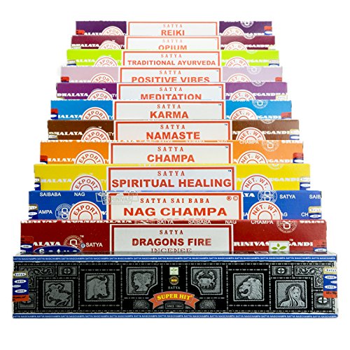 Satya véritable Satya Sai Baba - Nag Champa variété MIX Coffret cadeau B 12 x 15 g boîtes de Comprend, d'encens, Nag Champa Super Hit, Vibes positives, Namaste, CHAMPA, Opium, Reiki, Guérison spirituel, dragons Fire, Karma, méditation, Ayurveda traditionnel ? Avant d'effectuer votre achat, Zounko
