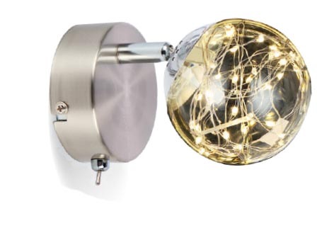 En chrome et verre. Hauteur : 12 cm env. Avec interrupteur. Composé de LED intégrées(2) de puissance max. 3,5 W, 350 lumens. GLOBO 56804-1. Existe aussi en barre 2 spots au prix de 44,90 € (dont 0,07 € d’éco-participation) et en barre 4 spots au prix de 79,90 € (dont 0,13 € d’éco-participation)..