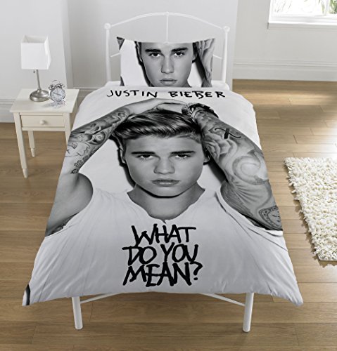 100 % marchandise officielle Dispose d'une fantastique image de Justin Bieber Taille de housse de couette : 137 x 198 cm Taille de la taie d'oreiller : 50 cm x 75 cm 52 % polyester, 48 % coton, lavable en machine.