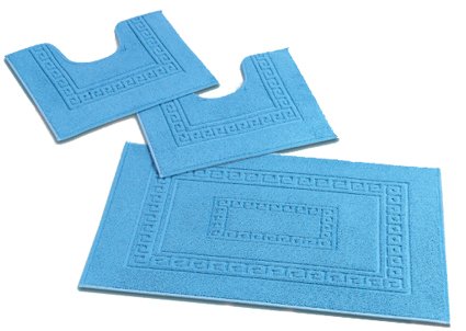 Torino : Parure tapis de salle de bains 3 pièces en éponge. Une grande grecque encadre un panneau central formé par une grecque plus petite avec deux rectangles au centre. Une fantaisie classique et hors du temps qui ne vous lassera jamais, créée par les bouclettes de coton alternant avec la trame velours. Un tapis créé suivant la méthode de fabrication de l'éponge, pratique, polyvalent, hautement absorbant et au poids idéal, lavable en machine et irréversible. Vous pouvez l'utiliser sans problème des deux côtés. La parure de 3 pièces comprend 1 tapis 60x90 cm et deux contours 45x60 cm. Disponible dans de nombreuses couleurs et tailles dans les catégories respectives. Composition : 80% Coton 20% Polyester Poids 1200g/m2 Lavable en machine Made in Italy.