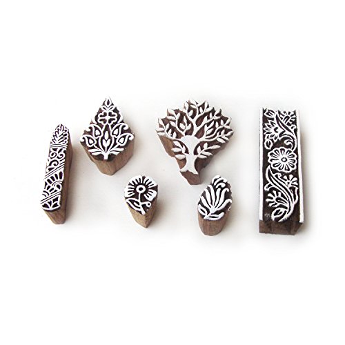 B00V0NS6I4 de Ethnique Arbre et Floral Designs Bois Tampons pour Impression (Set de 6)