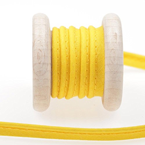 Ruban dépassant passepoil composé d'un cordon pincé dans une bande de biais - Jaune - Taille 10 mm - 65% polyester et 35% coton - Diamètre du cordon intérieur 3 mm LONGUEUR VENDUE PAR METRE D'UN SEUL TENANT Quantité 1 = 1 mètre | Quantité 2 = 2 mètres | Quantité 3 = 3 mètres etc. w w w . m e r c e r i e C A R E F I L . c o m
