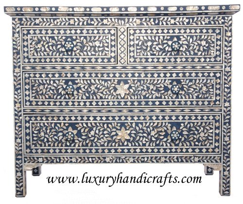 Qualité Sourced nacre incrusté Poitrine de quatre tiroirs Grand espace de rangement avec une touche de luxe pour la maison Verre Cut, bijou comme boutons pour Luxueux Apparence Fabriqué sur une base en bois massif avec MDF Sauvegarde pour Stronghold Fait sur commande. Le client possède une nouvelle pièce chaque fois qu'ils magasinent.