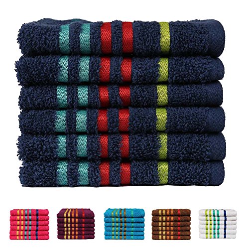 Couleur: Bleu Matériau: 100% coton; 475 grams per square meter Contenu du coffret: 6 Pièces Visage serviettes chaque mesure 30cm par 30cm Instructions d'entretien: lavage en machine doux recommandé, Ne pas laver à la main.