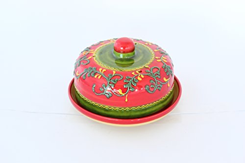 B019V5HJWG de Cloche à fromage Petite 18 x 11 cm de céramique faite et peinte à la main. Avec Soucoupe (2 pièces)