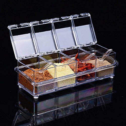 Corps en acrylique de cuisine Gourmet Boîte avec 4 cuillères, pot à épices set Condiment Cruet Bouteille Cuisine Fournitures. Partagez votre expérience avec d'autres internautes.