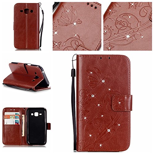 B01IP28H0E de Coque Etui pour Samsung Galaxy J1,Galaxy J1 Coque Dragonne Portefeuille PU Cuir Etui,Galaxy J1 Neo Coque de Protection en Cuir Folio Housse,Galaxy J1 Leather Case Wallet Flip Protective Cover Protector,Cozy Hut Etui de Protection PU Cuir Portefeuille Relief papillon Coque Housse Swag Case Cover Coquille Couverture avec Fonction Stand et Fentes de Carte de Crédit pour Samsung Galaxy J1 - brun