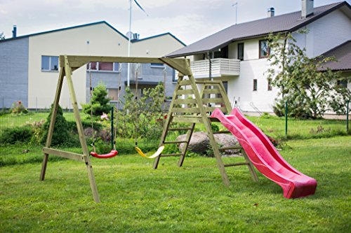 B01JA89O22 de TOBOGGAN AVEC BALANÇOIRE DE JARDIN POUR ENFANTS EN BOIS D'ÉPICÉA NORDIQUE