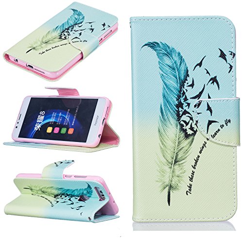 Cozy Hut Etui Honor 8, Coque Honor 8, Cozy Hut® Huawei Honor 8 PU Cuir Portefeuille Longe Coque silicone Etui Peint etui Case Cas Cuir Housse Leather Swag Flip Case Cover Coquille ouverture avec Fonction Stand et les fentes de carte de crédit pour Huawei Honor 8 - plumes d'oiseaux ? Avant d'effectuer votre achat, Zounko