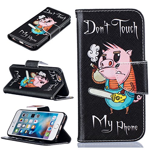 Cozy Hut Coque iPhone 6, Cozy Hut ® iPhone 6S Coque Livre Style PU Cuir Magnétique Flip Housse Étui Cover Case Wallet Portefeuille Supporter avec Carte de Crédit Fentes pour iPhone 6 6S (4,7 Zoll) - Chainsaw porc ? Avant d'effectuer votre achat, Zounko