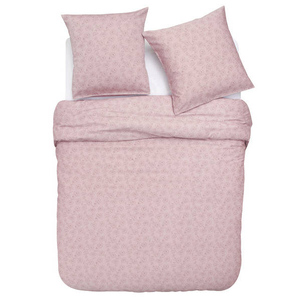 Satin 80 fils, 50% coton - 50% polyester. Rose. La housse de couette 240 x 220 cm + 2 taies d'oreiller 60 x 60 cm : 22,49 € au lieu de 44,99 € ou 260 x 240 cm + 2 taies d'oreiller 60 x 60 cm : 24,99 € au lieu de 49,99 €.