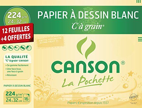 Promos Canson Pochette papier à dessin c à grain 12 feuilles + 4 offertes 224g 24 x 32 cm blanc (EAN: 3148950271174)