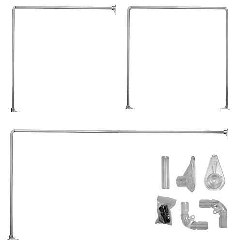 Barre de rideau dedouche universelle ( droit ou coudée) en métal Diametre: env. 20 mm adapté pour différent types de montage - Trous pour tige ou chaine de soutient dans les angles L-Forme : 90 x 90 cm. L-Forme lang: 90 x 177 cm. U-Forme: 90 x 90 x 90 cm Fixations incluses - Tiges ou chaines de soutient pour les angles non incluses