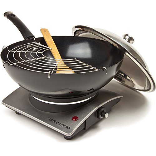 Promos Andrew James - premium wok électrique 1500w - avec grille de tempura, spatule en bambou et plaque électrique - 2 ans garantie (EAN: 5060146067171)