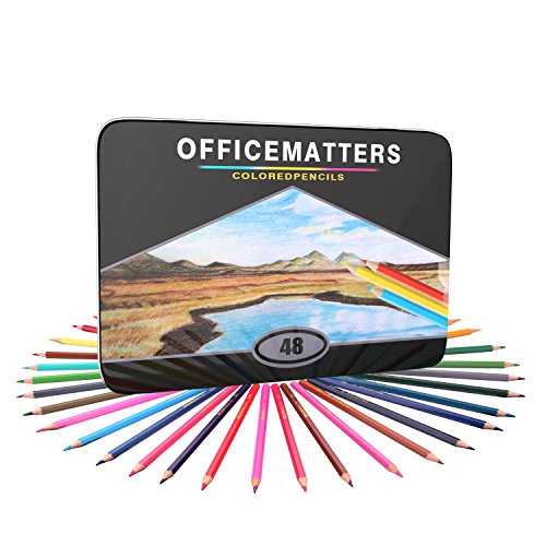 Promos officematters 48 crayons de couleur pour les livres à colorier pour adultes, noyau dur, paquet de 48 avec un étui de fer, couleurs assorties (EAN: B01I5084V8)