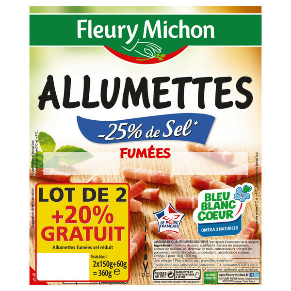 Acheter fleury-michon Allumettes fumées -25% de sel , identifié par le code barre EAN 3095758976018. En vente moins cher en ligne