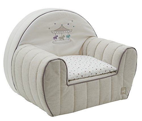 Mon Petit Manège, une collection raffinée et mixte. Le fauteuil a été mis au point pour participer à l'apprentissage de la position assise du bébé Déhoussable et dessous PVC pour faciliter l'entretien. Garnissage moelleux et matelassé pour un plus grand confort. lavage en machine à 30°.