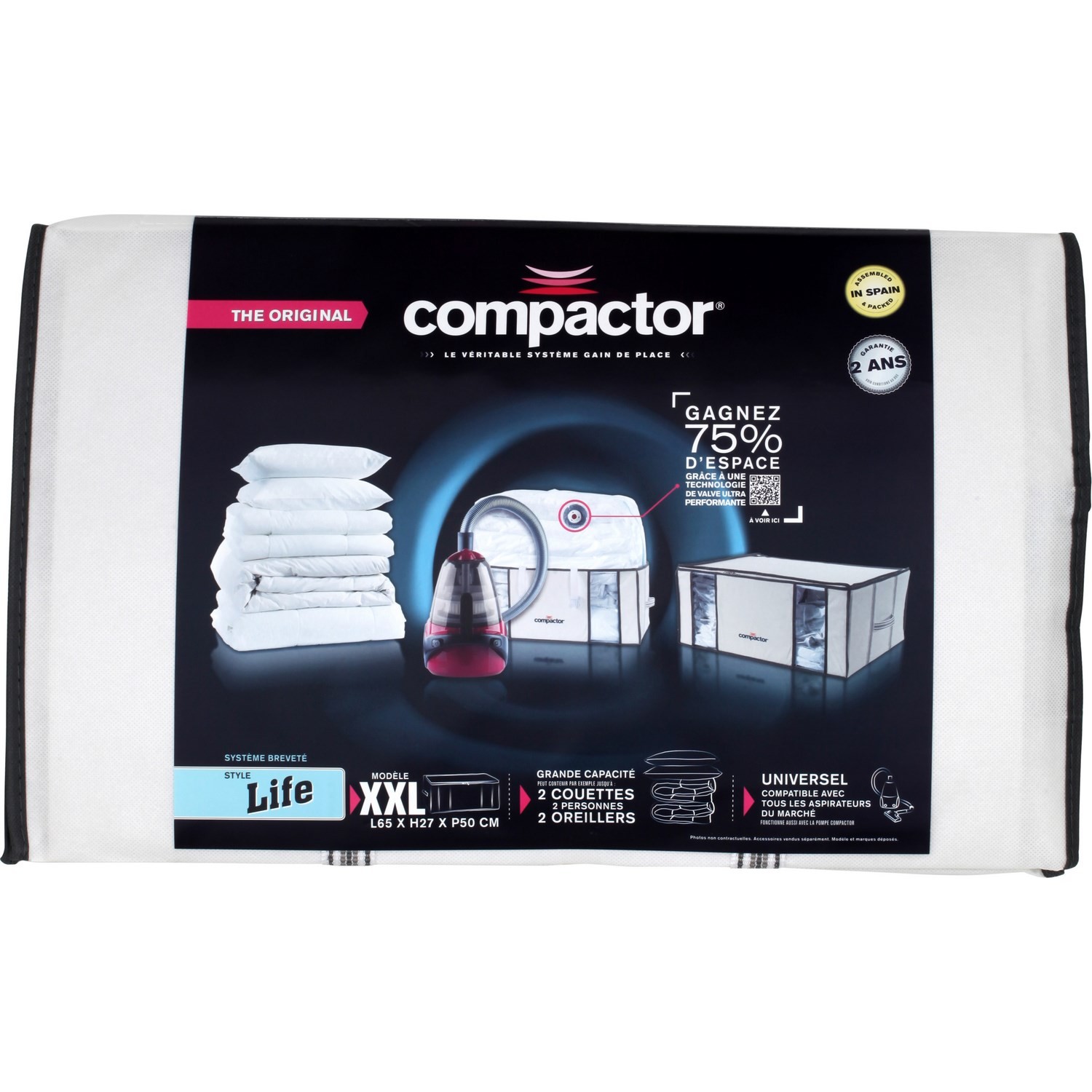 Protégez et organisez vos affaires avec Compactor ! Cette housse Compactor Life XXL d'une capacité de 210 litres, accompagnée de deux housses spéciales pour tiroir offertes, est idéale pour maximiser l'espace de rangement. Compactez, rangez et simplifiez votre vie grâce à Compactor !