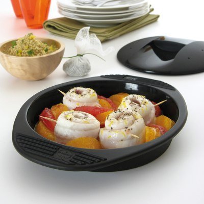 Couleur: Noir Dimensions: 27 x 11,5 x 10 cm Matière: Silicone Alimentaire / Nylon Haute Température Contenance: 600 ml Description détaillée: Une nouvelle façon de cuisiner prenant en compte les contraintes de la vie moderne tout en offrant des qualités gustatives et nutritives intactes. Cuisson rapide au four ou au micro onde. Cuisson à l'étouffée conservant nutriments et vitamines (mêmes avantages qu'à la vapeur ou en papillotte). Cuisson sans matière grasse. Portion Individuelle. Avantage de la silicone: N'attache pas, se lave d'un coup d'éponge ou au lave vaisselle, résiste à la chaleur, démoulage et service facile. Poignées rigides pour une préhension et une manipulation aisées.