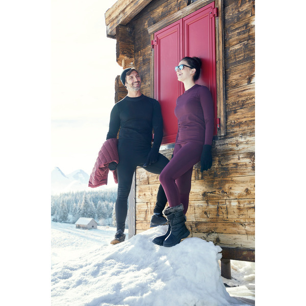 67% polyester - 30% polyamide - 3% élasthanne. Noir ou prune. Du 34/36 au 46/48. -