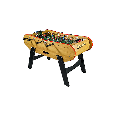 BABY-FOOT CATENACCIO SPORTIVO PLAY En bois MDF(1) mélaminé décor hêtre. Pieds réglables. Barres en acier 16 mm avec amortisseurs en caoutchouc. Cage en métal. Coins relevés. Retour latéral des balles. Livré avec 2 balles. Dim : L. 155 x l. 110 x H. 96 cm env. À monter soi-même. Garantie 2 ans.