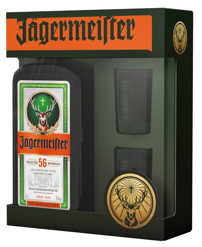 Acheter JAGERMEISTER + COFFRET 2 VERRES LIQUEUR JAGERMEISTER + COFFRET 2 VERRES , identifié par le code barre EAN 4067700023278. En vente moins cher en ligne chez (1 vendeur)