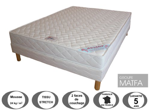 Mousse 24kg/m3. Hauteur 15 cm. Soutien très ferme. Cet ensemble literie est composé d'un sommier tapissier et du matelas Ariane en mousse densité 24 kg/m3 offrant un soutien très ferme. A déconseiller aux personnes fortes. Mousse.
